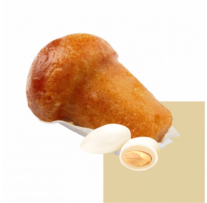 Doppio Milk Babà è un confetto alla mandorla che richiama uno dei dolci simbolo della tradizione partenopea. Il cuore di mandorla è ricoperto da uno strato di cioccolato aromatizzato al gusto babà, con note calde e avvolgenti che evocano la tipica bagna aromatica.