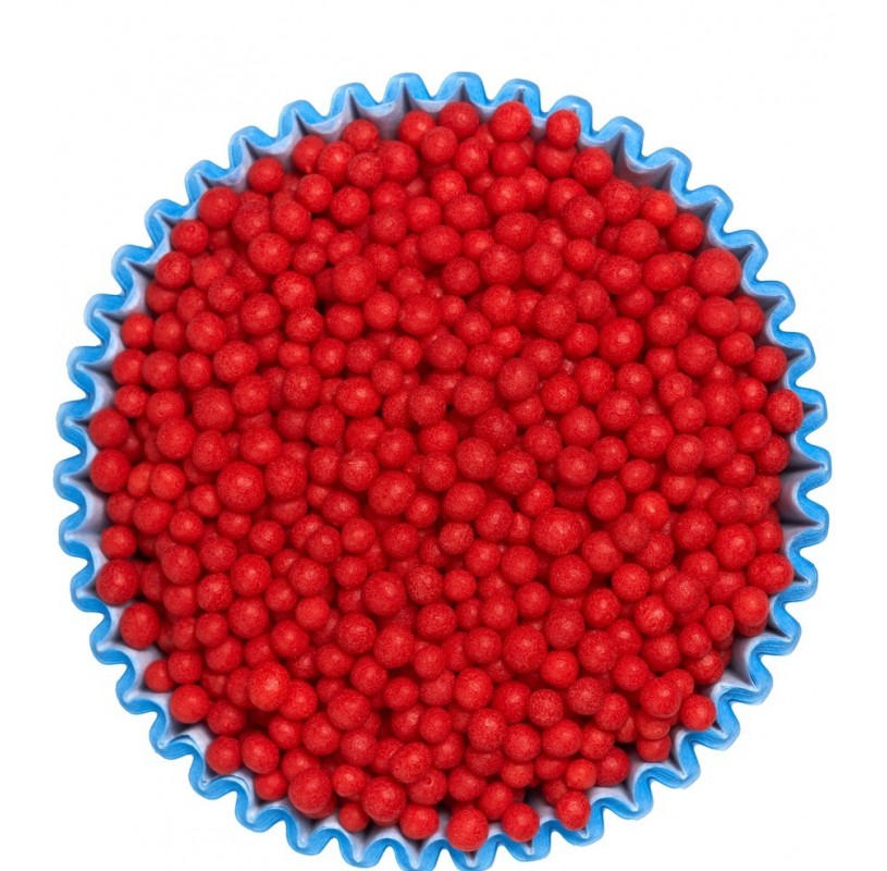 Biglie di zucchero rosse lucide, perfette per decorazioni vivaci e accattivanti su torte, cupcake e biscotti.