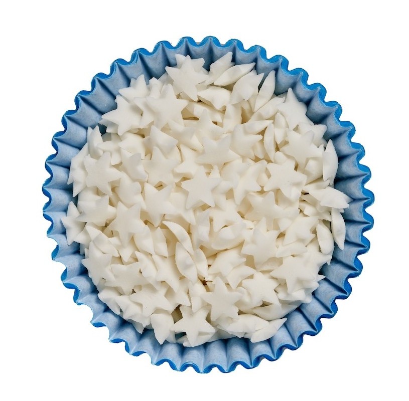 Stelline di zucchero bianche, ideali per arricchire con eleganza torte, biscotti e cupcake.
