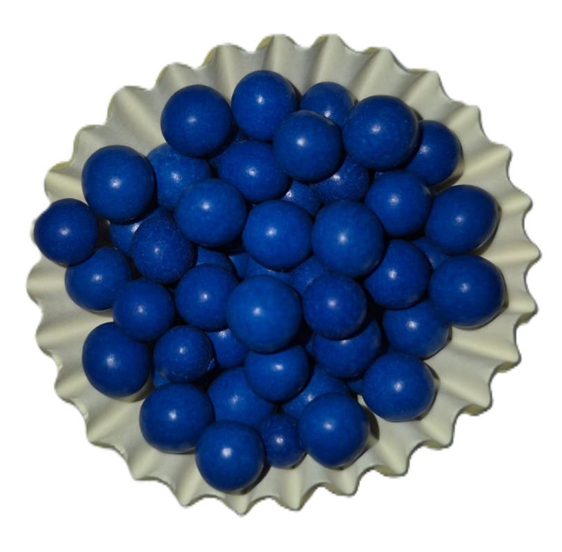Biglie di zucchero dal colore blu lucido, ideali per decorare torte, cupcake e dolci eleganti. Perfette per eventi e cerimonie. Prodotto artigianale Made in Italy.